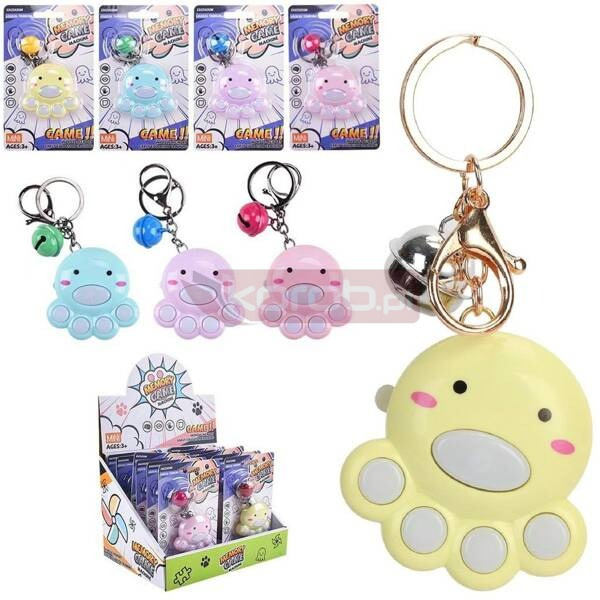 "Elektroniczna gra - brelok Memory to gwarancja rewelacyjnej zabawy, która równocześnie ćwiczy pamięć i koordynację ruchową. Zabawka odtwarza sekwencje świetlne, które należy powtórzyć. Doatkowo do breloka doczepiony jest dzwoneczek."