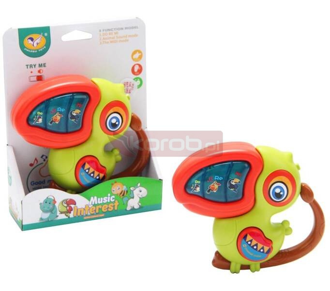 Kolorowe Pianinko Tukan to niezliczona ilość opcji komponowania i aranżacji własnych linii melodycznych dla dziecka. 4 kolorowye przyciski umożliwiają maluchowi wybór melodii lub piosenki, która najbardziej odpowiada jego gustowi muzycznemu. Zabawę i doznania słuchowe uatrakcyjniają efekty wizualne w postaci migoczących przycisków.