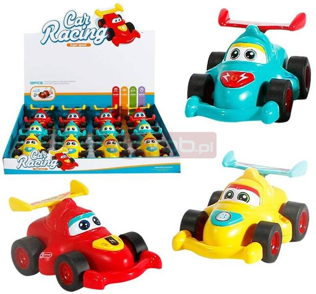 Auto wyścigowe z gumowymi kołami to idealna zabawka dla maluszka. Mieści się w małych rączkach i jest bardzo prosty w obsłudze, wystarczy bowiem delikatnie je popchnąć by wprawić w ruch.