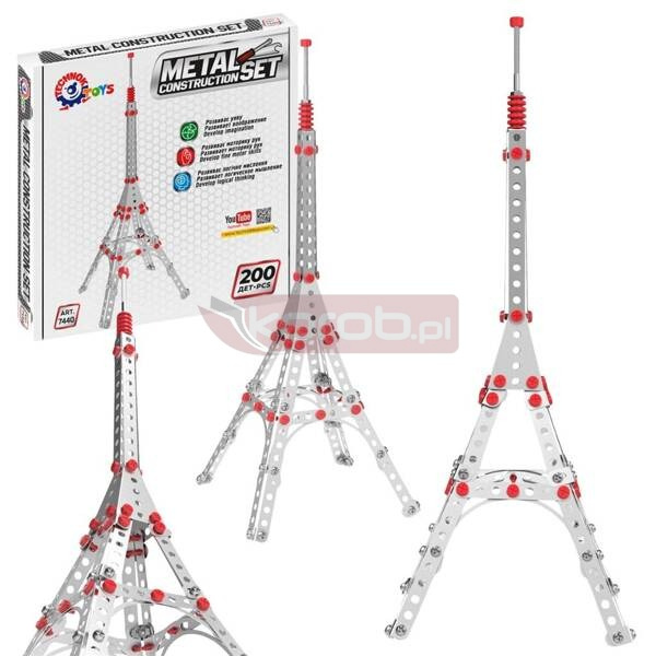Zestaw metalowej konstrukcji to doskonała propozycja dla miłośników modelarstwa i architektury. Składający się z 200 elementów, ten model umożliwia zbudowanie jednej z najbardziej rozpoznawalnych budowli na świecie - Wieży Eiffla, która jest symbolem Paryża. Dzięki innowacyjnym klipsom, montaż metalowych płytek jest szybki i łatwy, co sprawia, że tworzenie modelu jest przyjemnością zarówno dla dzieci, jak i dorosłych.