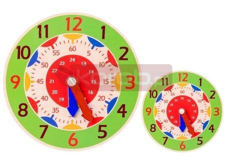 Zegar Drewniany Edukacyjny Godziny Minuty Sekundy Zielony Drewniany Zegar do nauki czasu to niezastąpiona pomoc dydaktyczna, która wspiera dzieci w opanowaniu sztuki odczytywania godzin i minut. Zaprojektowany z myślą o młodych uczniach, zegar ten stanowi doskonałe narzędzie edukacyjne, które w przyjazny sposób wprowadza maluchy w świat mierzenia czasu. Dzięki temu zegarowi dziecko nauczy się precyzyjnego określania czasu zarówno w wariancie 12-godzinnym, jak i 24-godzinnym, co jest kluczową umiejętnością w codziennym życiu. Zegar wyposażony jest w wyraźnie oznaczone tarcze, które przedstawiają godziny i minuty, co ułatwia dzieciom zrozumienie zależności między różnymi jednostkami czasu. Jedną z najważniejszych cech tego zegara są dwie ruchome wskazówki - godzinowa i minutowa - które dziecko może samodzielnie obracać. To interaktywne podejście pozwala maluchom na samodzielne ustawianie różnych godzin, co sprzyja aktywnemu uczeniu się poprzez praktykę. Dodatkowo zegar wyposażony jest w sekundnik, co pozwala na jeszcze bardziej szczegółowe zrozumienie upływu czasu. Dziecko może obserwować ruch sekundnika i zrozumieć, jak sekundy przechodzą w minuty, co jest istotnym krokiem w rozwijaniu poczucia czasu. Zegar do nauki czasu jest nie tylko funkcjonalny, ale także atrakcyjny wizualnie, co zachęca dzieci do częstego korzystania z niego. Jego solidna konstrukcja i intuicyjny design sprawiają, że jest łatwy w obsłudze i trwały, idealny do codziennego użytku zarówno w domu, jak i w klasie. Średnica zegara: 14cm Posiada certyfikat CE, ponadto jest zgodny z normą EN71. Przeznaczony dla dzieci powyżej 3 roku życia.