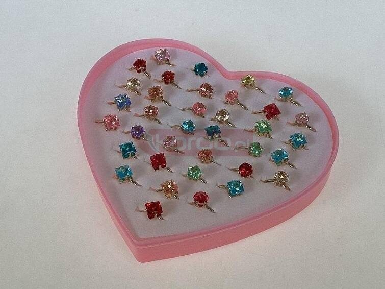 zestaw 36 szt. pierścionków metalowych, regulowanych z kolorowymi diamencikami