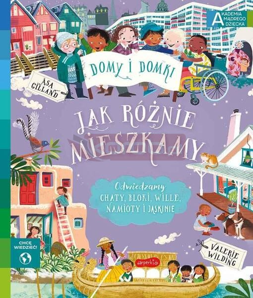 Chcecie odwiedzić dzieciaki z różnych stron? Zobaczyć, gdzie mieszkają na co dzień; jak wyglądają ich łóżka, pokoje i podwórka? Jakie mają rodziny, zwierzęta i zabawki? Gdzie się uczą i jak spędzają czas? W książce Jak różnie mieszkamy zaglądamy do najróżniejszych domów, mieszkań, apartamentów, chat, baraków, gospodarstw, jurt i łodzi. Dwadzieścioro dzieci z różnych kontynentów oprowadza nas po swoich domach. Jedne mają wiele pokoi, a nawet pięter, inne to skromne chatki. stojące wysoko w górach lub pod ziemią, w buszu i przy brzegu. Każdy z domów jest wyjątkowy tak jak jego mieszkańcy. Dzięki temu, że się różnimy, świat jest taki ciekawy! Akademia mądrego dziecka. Chcę wiedzieć to seria książek popularyzujących naukę przeznaczona dla starszych przedszkolaków oraz uczniów szkół podstawowych. Dzięki bogatym, kolorowym ilustracjom i ciekawej formie książki wpisują się w zdobywający popularność nurt edukacji edutainment (od angielskiego education - nauka oraz entertainment - rozrywka), którego podstawowym celem jest edukacja poprzez rozrywkę. Poruszana tematyka oraz przystępna forma przekazywania treści sprawiają, że są to doskonałe książki na nagrody szkolne (w konkursach lub na zakończenie roku). W serii Akademia mądrego dziecka. Chcę wiedzieć! znajdziesz też tytuły: "Ja i moje mikroby", "Kosmiczne urodziny! Lecimy na księżyc", "Tu jest nasz dom", "Możemy uratować naszą Ziemię", "Jak dawniej żyły dzieci", "Dlaczego jemy rośliny? Sekrety owoców, warzyw i zbóż", "Wielka misja małej sondy", "Nocowanka w Egipcie", "Dzieci świata takie jak Ty", "Świętuj z nami", "Jak smakuje czekolada na Evereście". Książki z tej serii otrzymały nagrodę główną w kategorii "książki dla dzieci młodszych 0-7" w XX edycji konkursu "Świat Przyjazny Dziecku".