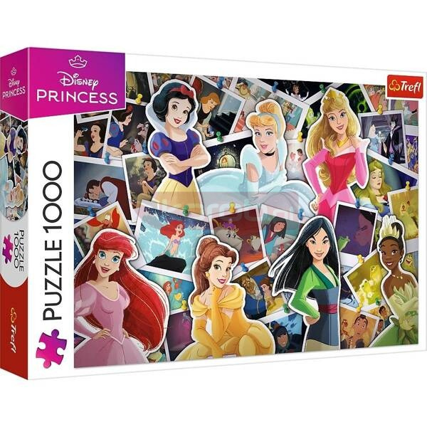Puzzle Księżniczki Disneya, składające się z 1000 elementów, przedstawiają kolaż z bohaterkami bajek Disneya. Po ich ułożeniu powstanie obrazek w rozmiarach 683x480 mm.