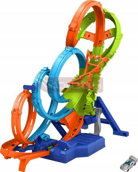 HOT WHEELS LET'S RACE ZESTAW TORÓW POCZWÓRNA PĘTLA KRAKS + autko HXR70