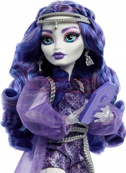 Do Straszyceum zawitała Spectra Vondergeist, zjawiskowa zjawa, która uwielbia straszyć przyjaciół. Lalka Spectra Vondergeist ma na sobie stylizację idealną dla trendsetterki nie z tego świata. W zestawie jest też jej fretka Rhuen oraz mnóstwo stylowych akcesoriów. Lalka ?Monster High Spectra Vondergeist cała w fiolecie prezentuje upiornie modny styl. W zestawie jest też mnóstwo akcesoriów tematycznych zachęcających do strasznie dobrej zabawy. Ten duch jest gotów nawiedzać szkolne korytarze w półprzezroczystym płaszczyku. Ma na sobie kombinezon z nadrukiem łańcuchów, pasek z łańcuszkami i kulami oraz dopasowane do reszty buciki. W zestawie jest mnóstwo akcesoriów, dzięki którym wyobraźnia rozkwita: plecak, „napój”, okulary przeciwsłoneczne, „kawałki kurczaka” z „ostrym sosem”, straszyfon i „tablet”. Spectra Vondergeist jest gotowa nawiedzić ulubione miejscówki w towarzystwie fretki Rhuen, która wygląda, jakby zmaterializowała się z mgły. Poznaj całą kolekcję lalek i zestawów Monster High, które zainspirują Cię do eksperymentów z modą i potwornie ciekawych przygód. Świetny prezent dla fanów Monster High.