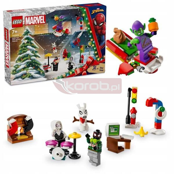 Za każdymi z 24 drzwiczek kryje się prezent, który dzieci będą mogły odkryć w kolejnym dniu przygotowań do świąt. W zestawie jest pięć minifigurek — Spider-Man, Zielony Goblin, Miles Morales, Ghost-Spider i Venom — a także minimodele i akcesoria, które dzieci znają ze scen z filmów o Spider-Manie rozgrywających się na ulicach Nowego Jorku. Należą do nich zimowy Spider-Ham, biurko Petera Parkera i choinka Electro. W zestawie są także dwa małe samochody, którymi można się ze sobą ścigać, oraz strzelająca prezentami katapulta Sandmana! Gdy nadejdzie ten wielki dzień, dzieci mo gą połączyć wszystkie prezenty i odegrać własne, nieskończone przygody.