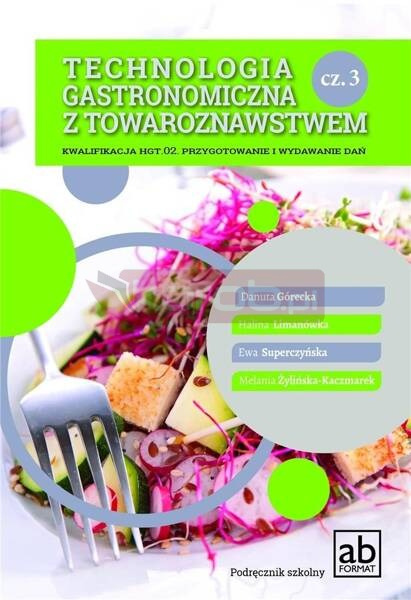 Wobec zmian, które nastąpiły w podstawach programowych i programach nauczania zmieniliśmy tytuł podręcznika Żywienie i usługi gastronomiczne cz. 3 Technologia gastronomiczna z towaroznawstwem na Technologia gastronomiczna z towaroznawstwem cz. 3 Kwalifikacja HGT.02. Przygotowanie i wydawanie dań. Treść podręcznika pozostała bez zmian.
