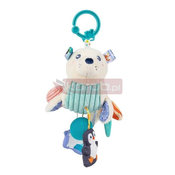 Milusia foczka wyposażona jest w mnóstwo niespodzianek, z którymi maluch zapomni o nudzie! Jest tu bezpieczne lusterko do samopoznania bobasa, linki do przeciągania, materiałowy pingwinek i miś polarny, a także kolorowe metki z obrazkami. Milutkie futerko zachęca do przytulania zwierzaka, a zróżnicowane faktury zastosowanych w nim materiałów, zachęcą bobasa do rozwijania zdolności poznawczych. Zabawka wyposażona jest w praktyczną zawieszką, więc można ją przyczepić w dowolnym miejscu, aby towarzyszyła maluchowi w każdej sytuacji.
