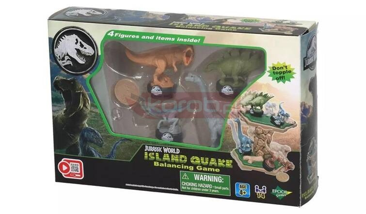 Gra w balansowanie ze sceną z motywem Jurassic World i kawałkami dinozaurów! Jurassic World Island Quake to prosta gra polegająca na balansowaniu. Rzuć medal i przesuń figurkę lub gałąź na scenę. Uważaj, aby nie zrzucić elementów ze sceny! W zestawie 4 figurki dinozaurów Jurassic World.
