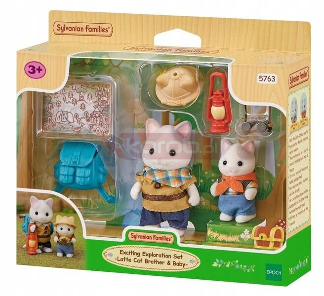 Kto chce dołączyć do wielkiej wyprawy? Rodzeństwo Latte Cat Families jest już przygotowane! Zabierz swoje figurki na wielką wyprawę! Nie zapomnij zabrać ze sobą kapelusza safari, plecaka, lampy, lornetki i mapy . W zestawie Wielka wyprawa znajdziesz wszystkie niezbędne przedmioty, żeby wyruszyć przed siebie Zestaw zawiera 2 figurki uroczych bohaterów z krainy Sylvanian Families pokryte mięciutkim, jedwabistym futerkiem Chłopiec Mick Latte Cat, który jest silny i odważny . Uwielbia odkrywać i przeżywać przygody. Zawsze jest dobrze przygotowany i gotowy na kolejną wyprawę Starannie zapakowany plecak jest pełen najróżniejszych rzeczy, które przydadzą się podczas wyprawy Mała Mabel Latte Cat uwielbia psoty i niczego się nie boi Mick zawsze się o nią martwi. Uwielbiają wspólne wyprawy Mick i Mabel mają na sobie ubrania odkrywców, dostępne wyłącznie w tym zestawie Mick może trzymać latarnię i nosić plecak, a Mabel może włożyć kapelusz safari i trzyma lornetkę Zestaw można połączyć z innymi zestawami Secret Forest Falls oraz z rodziną Latte Cat Family.