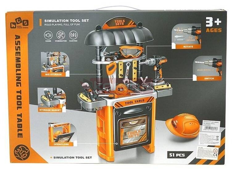 stół z narzędziami, 51 części, światło, dźwięk; 69x35x11cm, Box
