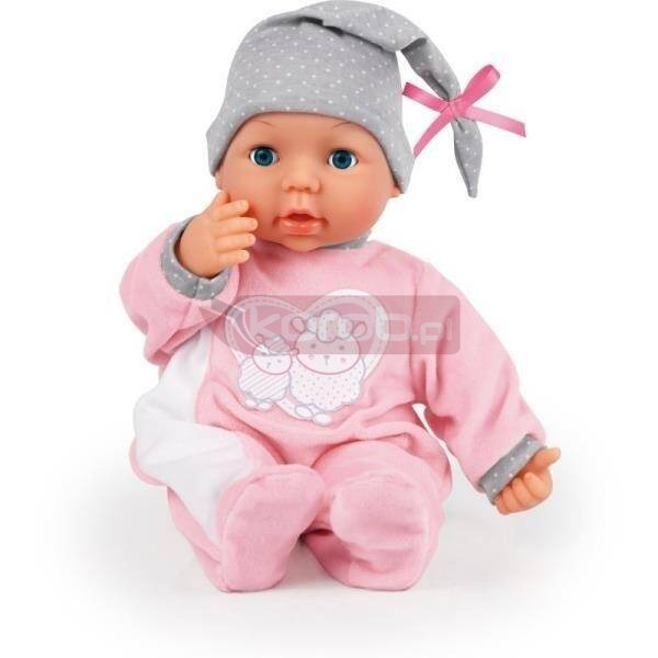 My Piccolina Interactive to słodka lalka o długości 38 cm z 26 funkcjami. Jeśli naciśniesz jej brzuch, usłyszysz prawdziwe dźwięki dziecka. Jeśli podasz jej butelkę, poruszy ustami i wyda prawdziwe dźwięki picia. Ssie smoczek jak prawdziwe dziecko i wydaje przy tym dźwięki. My Piccolina Interactive nosi pluszowy miękki różowy kombinezon dziecięcy w owce i czapkę w kropki. Uwaga: Lalka ma dwa tryby zabawy - DEMO (lalka porusza ustami ze smoczkiem), ON (lalka porusza ustami podczas karmienia, a dźwięki dziecka na brzuchu są aktywowane).