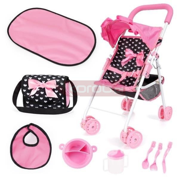 Ten zestaw wózek spacerówka dla lalek to idealny zestaw startowy dla małych mam / tatusiów lalek. Składa się z wózek spacerówka dla lalek, torby na ramie, talerzyka ze sztućcami, kubka do picia, śliniaka i maty do przewijania. Dzięki podwójnym kolom i miękkiej rączce wózek dla lalek jest łatwy do pchania. Wózek spacerówka jest składany, co ułatwia jego przechowywanie i transport. W zintegrowanym koszyku można umieścić wiele akcesoriów. Kolorystycznie dopasowana torba na ramie oferuje również dodatkowe miejsce do przechowywania. W zestawie znajduje się talerz ze sztućcami, kubek do picia i śliniaczek do karmienia lalki. Mata do przewijania zapewnia jeszcze więcej zabawy