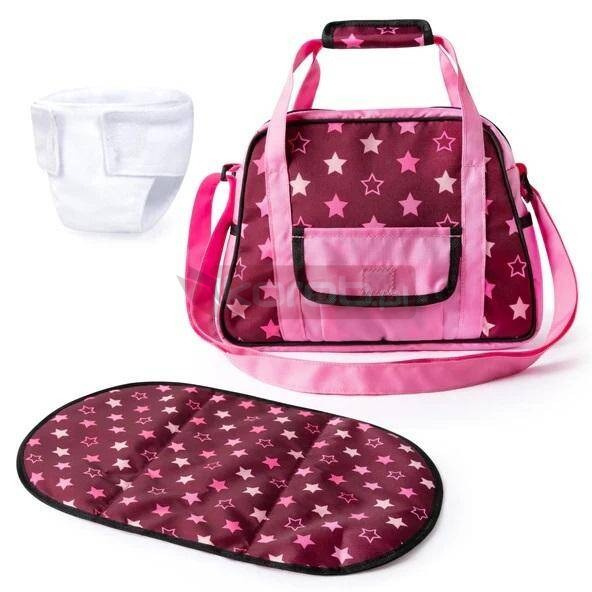 Ta piękna torba na pieluchy zawiera podkładkę do przewijania oraz wszytą pieluchę i jest idealna do przechowywania niezbędnych rzeczy dla lalek przez cały czas. Torba ma nowoczesny design i jest zamykana na zamek, dzięki czemu wszystkie rzeczy mogą być bezpiecznie przechowywane. Dodatkowa przestrzeń zapewnia mała naszywana kieszonka z przodu. W niej np. smoczek lalki może być zawsze w zasięgu ręki. Dzięki regulowanemu paskowi na ramie, torbę na pieluchy można dopasować do wielkości dziecka. Wyścielanie wokół uchwytów torby zapewnia dodatkowy komfort noszenia. W zestawie oprócz torby znajduje się mata do przewijania. Dołączona do zestawu pieluszka do szycia jest łatwa do otwierania i zamykania, nawet dla małych raczek dziecka.