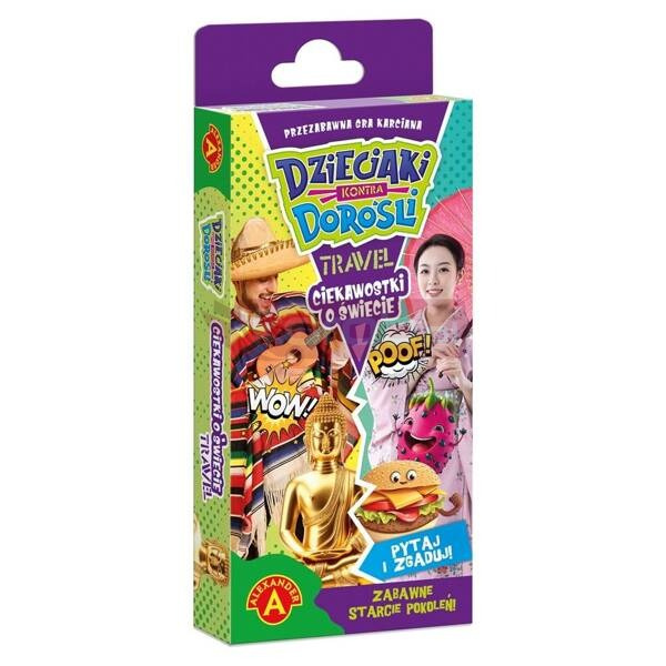 "Dzieciaki Kontra Dorośli Ciekawostki o Świecie Travel" to gra planszowa, która zapewni świetną zabawę całej rodzinie. Dzieci rywalizują z dorosłymi, odpowiadając na podchwytliwe pytania dotyczące światowych ciekawostek. Dzięki dwóm oddzielnym zestawom kart z pytaniami o innym poziomie trudności dedykowanym dzieciom oraz rodzicom, szanse na wygraną są takie same dla obu drużyn.