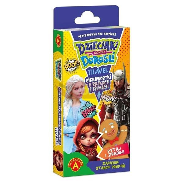 "Dzieciaki Kontra Dorośli Ciekawostki o Bajkach i Filmach Travel" to gra planszowa, która zapewni świetną zabawę całej rodzinie. Dzieci rywalizują z dorosłymi, odpowiadając na podchwytliwe pytania dotyczące świata baśni i filmów. Dzięki dwóm oddzielnym zestawom kart z pytaniami o innym poziomie trudności dedykowanym dzieciom oraz rodzicom, szanse na wygraną są takie same dla obu drużyn.