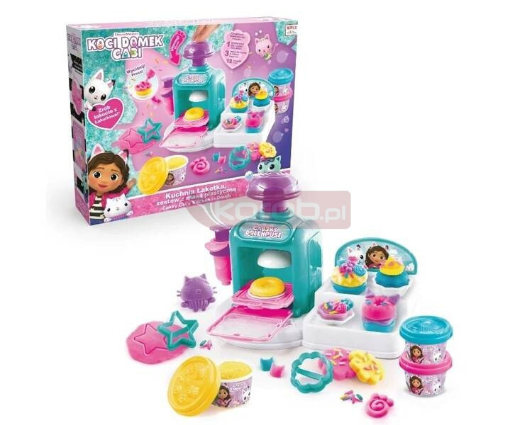 Kuchnia Łakotka z linii Koci Domek Gabi to uroczy zestaw do tworzenia kolorowych ciast, ciasteczek i innych łakoci. W zestawie znajdują się narzędzia, maszyna do tworzenia ciast oraz masy plastyczne w 3 kolorach.