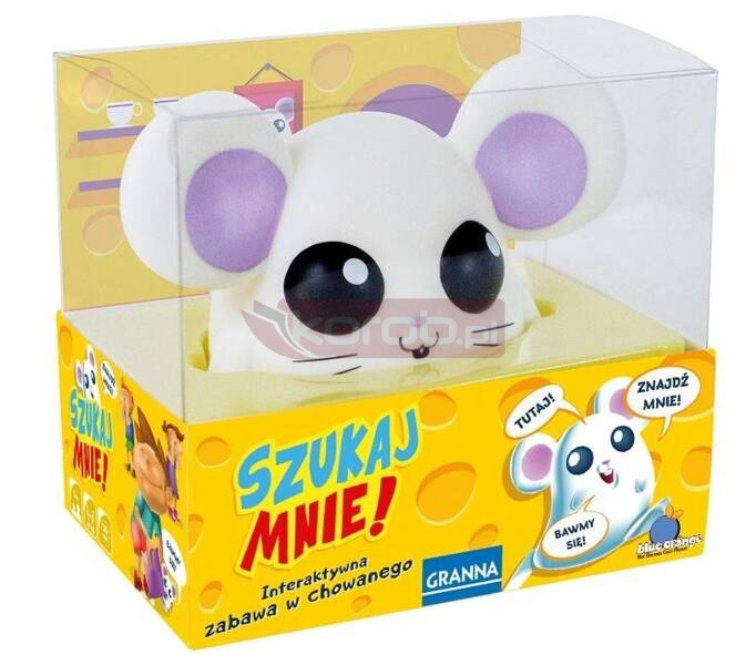 Ta niesforna myszka znów się schowała i coś podgryza! Pomożecie mi ją odnaleźć? Wytężcie słuch, słyszycie ją? Sprawdziliście kosz z ubraniami? A może za kanapą? Czy ktoś wołał z górnej półki z zabawkami? Postarajcie się odnaleźć jej kryjówkę. I doprowadzić ją do serowego pudełka.
