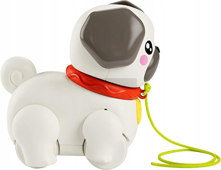Klasyczna zabawka do ciągnięcia Mały piesek mopsik od Fisher-Price® to doskonały towarzysz zabaw malucha. Złap za „smycz”, pociągnij psiaka za sobą i obserwuj jak nogi i uszy psa poruszają się, a piesek wydaje słodki odgłos szczekania, który pobudza dzieci do chodzenia dalej i wspiera ich motorykę motoryczną. zupełnie jak prawdziwy piesek! Ten mały piesek podbije serce każdego małego przyjaciela zwierząt Mopsik towarzyszy dziecku podczas jego pierwszych kroków Kiedy piesek jest ciągnięty za smycz porusza uszami i szczeka Odgłosy i ruchy psa zachęcają do spaceru z psem i ciągnięcia go za sobą