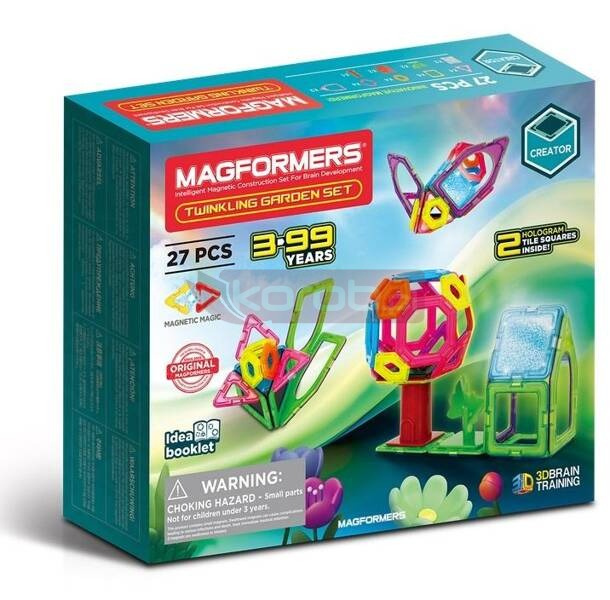 Magformers to klocki z wbudowanymi silnymi magnesami neodymowymi, które zawsze się przyciągają. Wystarczy zbliżyć do siebie ściankami dwa klocki, a one natychmiast ze sobą się połączą. Za pomocą klocków wzorowanych na kształt figur geometrycznych można zbudować wspaniałe trójwymiarowe budowle. W zabawie można korzystać z dołączonej do zestawu instrukcji lub własnej wyobraźni. W skład zestawu wchodzi 27 elementów: 4 trójkąty, 6 kwadratów, 4 sześciokąty, 4 ośmiokąty oraz 9 innych elementów, które umożliwiają stworzenie niezwykłych konstrukcji.