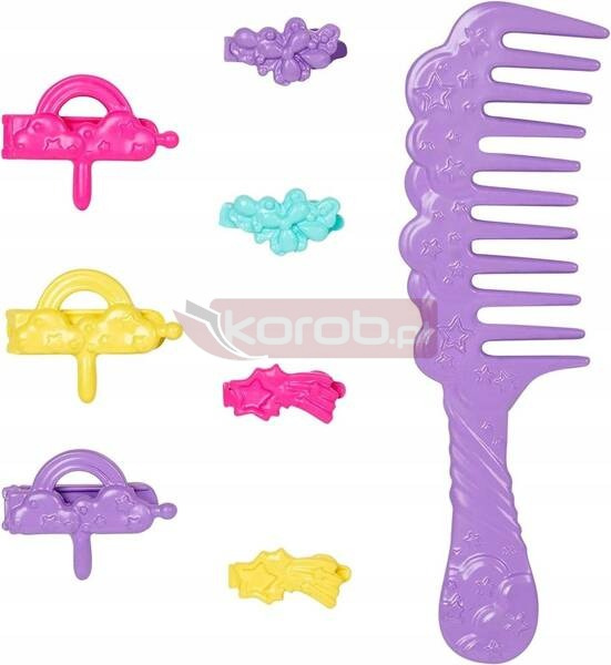 Mali styliści mogą tworzyć bajkowe fryzury z lalką Barbie® Zakręcone pasemka. Wystarczy włożyć zaczepy pasemek do przyrządu i nacisnąć przycisk, by wyczarować różne zakręcone fryzury na bardzo długich, kolorowych włosach lalki. Śliczna lalka jest ubrana w dwukolorowy gorset i spódniczkę w gwiazdki. Wymyślaj nieskończone oryginalne fryzury! Lalka Barbie® ma bardzo długie włosy (21,5 cm) o fantazyjnym odcieniu i tęczowe doczepiane kosmyki wzbogacające zabawę w układanie fryzur. Rozczesz włosy Barbie®, a potem umieść dwa lub trzy zaczepy pasemek w specjalnym przyrządzie do stylizacji i twórz fantastyczne fryzury jednym naciśnięciem przycisku. Gdy skończysz układać fryzurę, wykorzystaj trzy tęczowe klipsy, aby trzymała się na miejscu. Możesz powtarzać tę magiczną zabawę wciąż od nowa – możliwości są nieograniczone. Uzupełnij wygląd lalki Barbie® kolorowymi spinkami, a potem ruszaj ku magicznym przygodom. Lalka Barbie® Zakręcone pasemka zachęca do odkrycia w sobie kreatywności i wyrażania siebie. Wspaniały prezent dla fanów baśni od 3 roku życia.