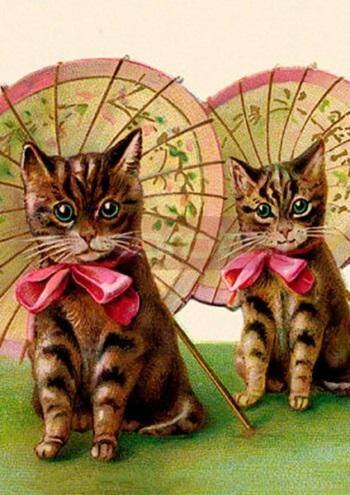 Karnet B6 z kopertą Kotki z parasolkami, w środku bez tekstu, wyprodukowany w Wielkiej Brytanii.