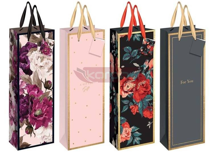 Torebka na butelkę Gold, mix wzorów, produkt wysyłany losowo