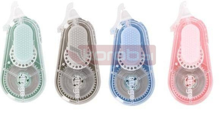 Korektorw taśmie, w przezroczystej, ergonomicznej obudowie umożliwiającej kontrole zużycia taśmy. WyJątkowo odporna taśma nie rozrywa się ani nie pęKa. Korektor szybko schnie oraz nadaje się do wszystkich rodzajów papieru. Szerokaśt taśmy: 5mm, dlugaśt taśmy: 6m. Dostępny w czterech kolorach: zielony, żółty, niebieski, różowy.