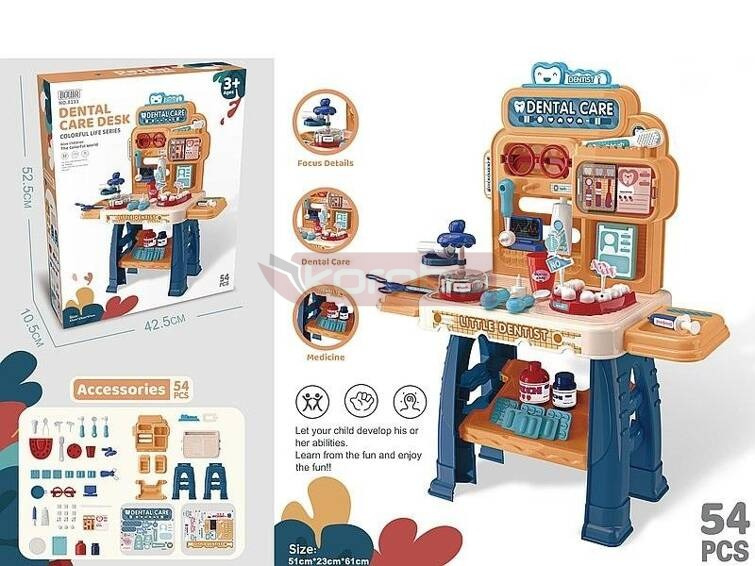 zestaw stół dentysty z wyposażeniem, wym.rozłożonego 61x51x23cm, 54 części; 52,5x42,5x10,5cm, Box