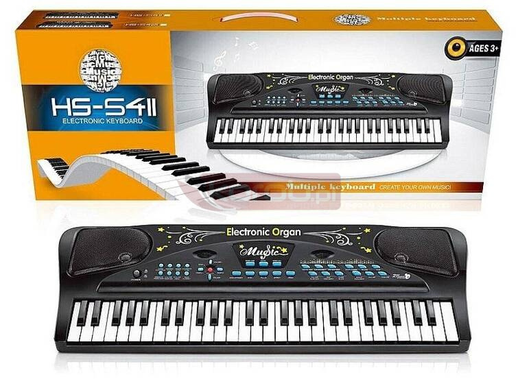 organy na baterie 54 klawisze, z mikrofonem, ładowarka; 70x25x10cm Box