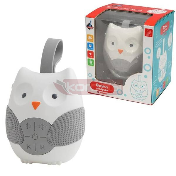 Pozytywka do łóżeczka lub wózka - SOWA. Regulacja głośności, możliwość ustawienia czasu grania pozytywki - 15, 30 lub 60 minut. Wybór spośród 12 spokojnych melodii. wymiary opakowania: 16x12x14 cm wiek: 3m+