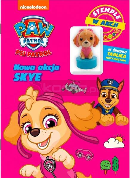 Psi Patrol. Stemple w akcji to fantastyczna książka dla każdego fana dzielnych piesków. W środku na malucha czekają zagadki, kolorowanki, zadania logiczne i łamigłówki, w rozwiązywaniu których pomocny będzie dołączony do książki stempel z nieustraszoną Skye. Publikacja pobudza wyobraźnię, spostrzegawczość i umiejętność analizy. Książka stanowi wspaniałą propozycję na kreatywne spędzenie czasu w towarzystwie ulubionych bohaterów. Świetna zabawa gwarantowana!