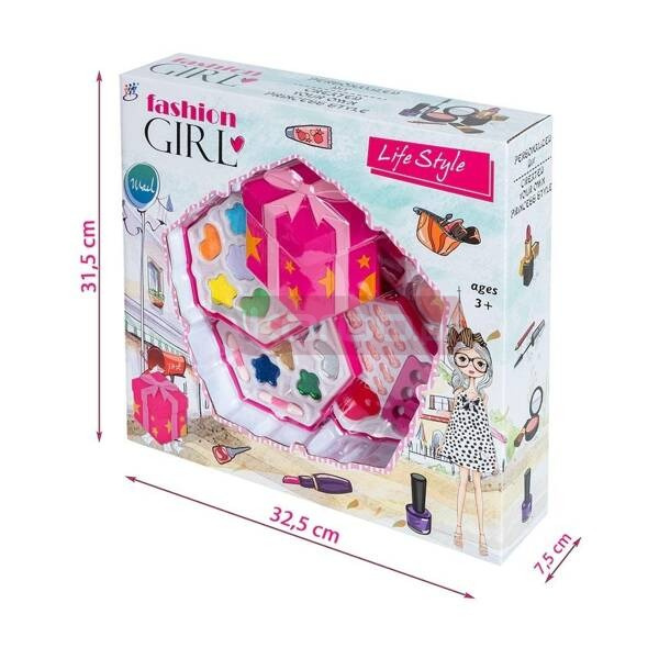 W 3-poziomowym kuferku znajdziesz wszystko, czego potrzebuje mała dama: cienie do powiek, pomadkę, lakier do paznokci i inne elementy
