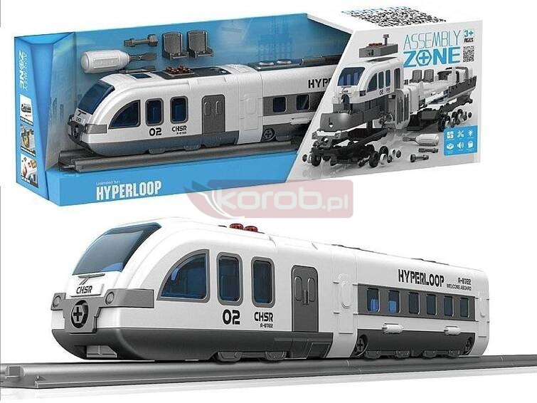 pociąg metra 1:16 do skręcania, światło, dźwięk; 50x12,5x16cm, W/B
