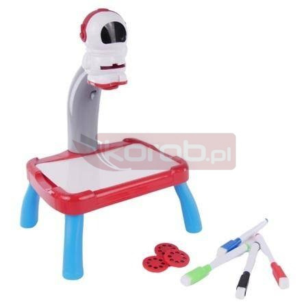 Ten unikalny stolik posiada wbudowany projektor, który umożliwia projekcję różnorodnych obrazów na powierzchni stolika. Dziecko może wybierać spośród wielu tematów, w tym motywów astronauty, które wprowadzą je w kosmiczną podróż pełną wyobraźni i kreatywności. Robot ma wygodny włącznik, służący do zapalenia światła, które stworzy odpowiednią atmosferę do twórczych eksploracji. Po włożeniu krążka ze slajdem, obrazy zostaną wyświetlone na podstawie projektora, dając dziecku możliwość odrysowywania ich w notesiku lub tworzenia bezpośrednio na podstawie.