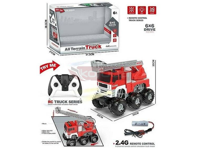 Auto straży pożarnej na radio, 35x25x20cm, ładowarka usb; 41,5x30,5x21cm,