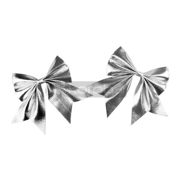 Komplet 2 sztuk błyszczących kokard o wymiarze 12 x 13 cm.