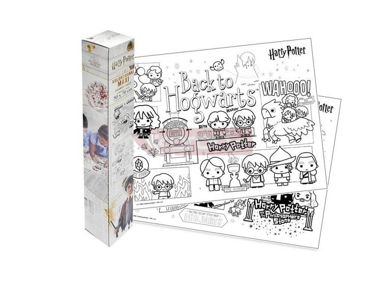 Wielkoformatowa kolorowanka wykonana z grubego, białego papieru. Możliwość pracy kilku osób jednocześnie. Profesjonalna grafika, wyraźny druk w kolorze czarnym. Rolowany bez zagnieceń. W tekturowej tubie chroniącej przed zniszczeniem. Odpowiedni do kolorowania kredkami, flamastrami, markerami i farbami. Na kolorowance znajdują się ulubieni bohaterzy z serii Harry Potter.