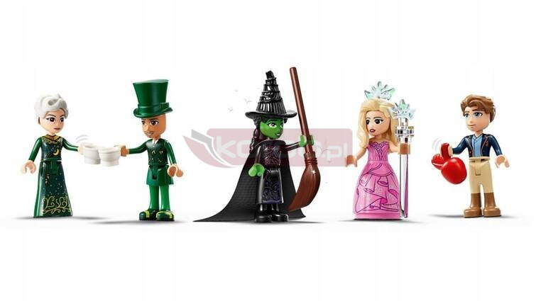 Dzięki pięciu minilaleczkom dzieci mogą odgrywać sceny z filmu Wicked między Fiyero, Glindą i Elphabą, gdy postaci odwiedzają sklep z kosmetykami, kupują ciasta lub napój u obwoźnego sprzedawcy kawy. Więcej pomysłów na zabawę oferuje ukryty kod QR, który po zeskanowaniu przeniesie dzieci do wyjątkowych treści LEGO Wicked w internecie.