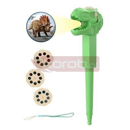 W zestawie znajdują się 3 slajdy, które po włożeniu do wbudowanego w zabawce projektora wyświetlą obrazki dinozaurów. Dziecko może poznać różne gatunki dinozaurów. Długopis wyposażony jest również w latarkę oraz zawieszkę. Dzięki dołączonej do zestawu zawieszce można w łatwy sposób nosić wszędzie ze sobą zabawkę