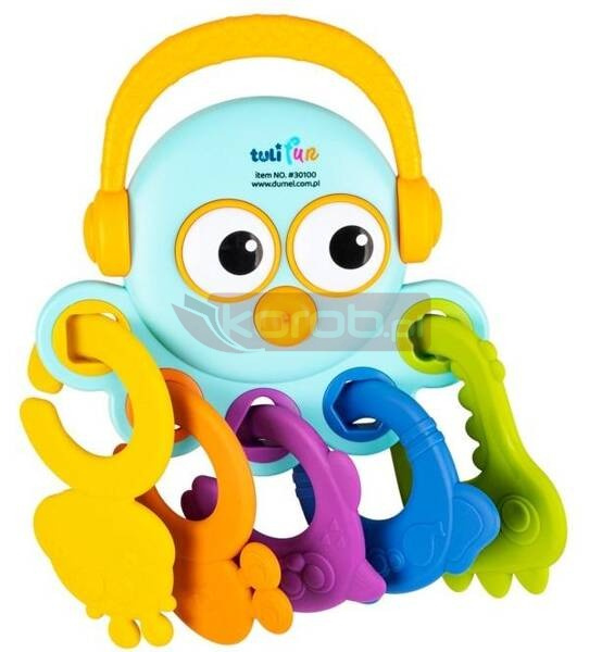 Ośmiornica pomoże ząbkującemu maluchowi, przynosząc ulgę obolałym dziąsełkom. Wszystko za sprawą kolorowych, odczepianych gryzaków w kształcie zwierzątek, których w zestawie znajduje się aż 5! Każdy z nich odznacza się innym kolorem, kształtem oraz zróżnicowanymi wypustkami, które podczas gryzienia masują podrażnione ząbkowaniem dziąsła bobasa. Zabawka posiada praktyczny uchwyt, który powala na jej wygodne przenoszenie z miejsca na miejsce.