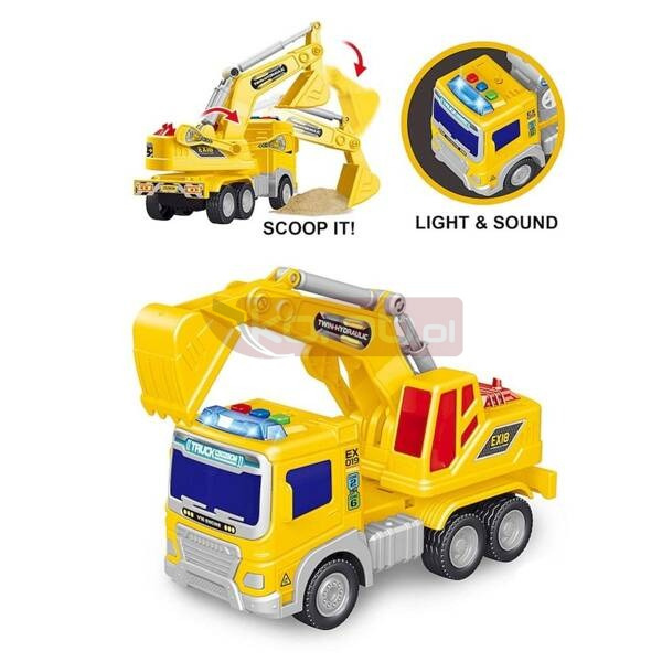 Pojazd koparka może poruszać się po powierzchni i pomagać w wykonywaniu różnych prac, co rozwija wyobraźnię i kreatywność dziecka. Jest idealną zabawką dla małych miłośników maszyn budowlanych i służb miejskich.