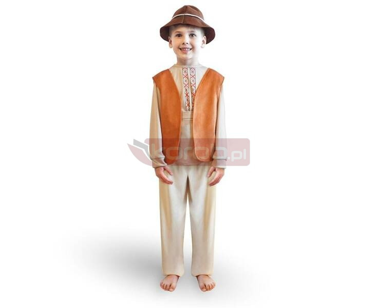 ZESTAW DLA DZIECI PASTUSZEK Rozmiar: 110/120 cm Materiał: poliester Zestaw zawiera: bluzka, spodnie, pasek, kamizelka, nakrycie głowy Ilość sztuk w opakowaniu: 1