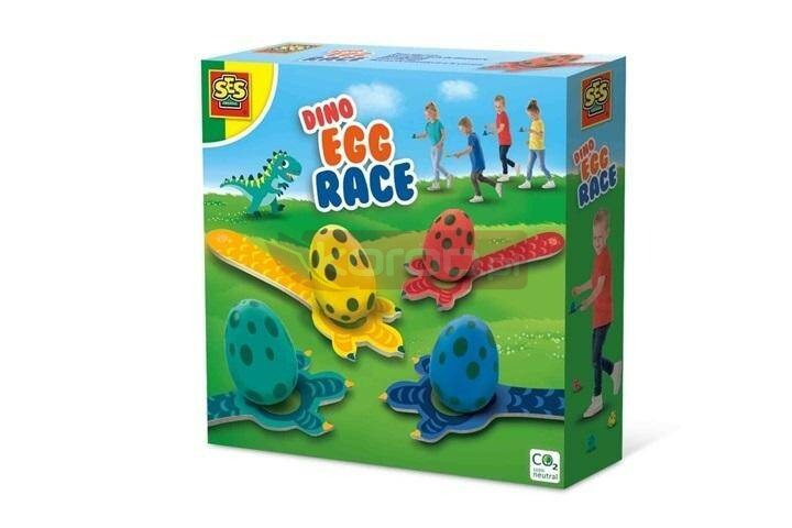 Wyścig jaj dinozaurów, ekscytująca i aktywna gra na świeżym powietrzu od SES Creative. Stwórz tor na świeżym powietrzu, a czworo dzieci będzie mogło się ze sobą ścigać! Połóż jajka na drewnianych łyżkach dinozaurów, utrzymuj równowagę i zacznij biec! Kto pierwszy bezpiecznie dotrze na drugą stronę? Zestaw zawiera wygodną torbę do przechowywania z czterema jajami dinozaurów, czterema żetonami dinozaurów i czterema łyżkami dinozaurów.