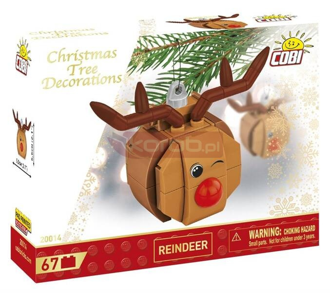 Dekoracja choinkowa z klocków - Renifer 67 klocków 0 figurek Grupa wiekowa: 5+ Renifer Rudolf, czerwononosy, to ukochany bohater świątecznych opowieści i popularny motyw ozdób. Zbuduj piękną zawieszkę. Element z otworem pozwala przewlec nić lub sznurek, aby powiesić ozdobę np. na choince! Stwórz świąteczny klimat lub podaruj komuś wyjątkowy prezent! Budowa ozdoby jest bardzo prosta dzięki intuicyjnej instrukcji. Klocki posiadają nadruki, które nie ścierają się nawet przy intensywnym użytkowaniu. 67 wysokiej jakości elementów Wyprodukowane w UE przez firmę z ponad 35-letnią tradycją Spełnia normy bezpieczeństwa produktów dla dzieci W pełni kompatybilne z innymi markami klocków konstrukcyjnych Czytelna i intuicyjna instrukcja oparta na rysunkach i ikonach Wymiary dekoracji (dł. x wys.): 5,5 cm (2,1") x 5,5 cm (2,1")