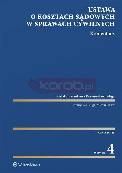 Książka otwarta.png [5 KB]Książka stanowi kompleksowe kompendium wiedzy z zakresu ustawy o kosztach sądowych w sprawach cywilnych napisane przez praktyków z doświadczeniem orzeczniczym w rozstrzyganiu w tego rodzaju sprawach. Autorzy w sposób przystępny i wszechstronny przedstawili rozwiązania problemów związanych z interpretacją przepisów komentowanej ustawy, które wywołują wiele wątpliwości i rozbieżności w praktyce stosowania prawa. Zawartość opis ebooka.png [20 KB]Komentarz zawiera omówienie najnowszych zmian do ustawy o kosztach sądowych w sprawach cywilnych, dotyczących np: wprowadzenia opłaty stałej od pozwu w sprawach o uznanie czynności prawnej dłużnika dokonanej z pokrzywdzeniem wierzycieli - wprowadzenia nowych opłat od wniosku o zawezwanie do próby ugodowej, - zmiany opłat w sprawach pracowniczych, - wynagrodzenia oraz zwrotu kosztów dla kuratora sądowego. W publikacji znajduje się również szerokie odniesienie do piśmiennictwa (komentarzy, monografii, artykułów, glos i innych opracowań) oraz judykatury Trybunału Konstytucyjnego, Sądu Najwyższego, licznych publikowanych oraz niepublikowanych orzeczeń sądów powszechnych, a także Europejskiego Trybunału Praw Człowieka i Europejskiego Trybunału Sprawiedliwości. Adresaci.jpg [8 KB]Książka jest przeznaczona dla wszystkich osób uczestniczących w postępowaniach sądowych w sprawach cywilnych, w szczególności: sędziów, adwokatów, radców prawnych, prokuratorów, referendarzy sądowych, asystentów sędziów. Publikacja będzie także przydatna dla aplikantów Krajowej Szkoły Sądownictwa i Prokuratury oraz aplikantów adwokackich, radcowskich, komorniczych.