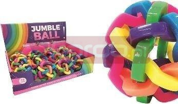 12 szt/disp, śr. piłki 7 cm, piłka składa się z plątaniny gumowych pasków, można ją odbijać, gnieść, rzucać, wym. disp. 29,5 x 21,5 x 7,5 cm, 3+