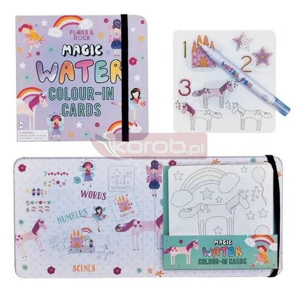 Dzięki tej magicznej kolorowance wodnej z zmieniającymi kolor nie będziesz się już martwić o ślady w mieszkaniu. Zestaw zawiera 10 kart wielokrotnego użytku oraz pisak na wodę. Wystarczy napełnić pisak wodą i zachęcić dziecko do nauki przez zabawę. Na każdej karcie znajdują się ciekawe rysunki, kształty i cyfry do pokolorowania. W trakcie zabawy dziecko może rozwijać motorykę, wyobraźnię oraz kreatywność. Karty można używać wielokrotnie.