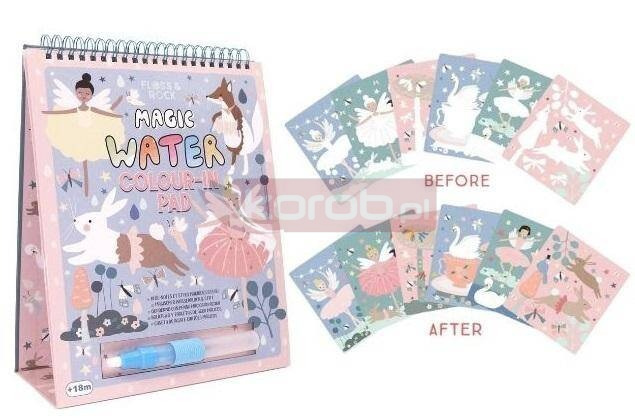 Kolorowanka wodna z pisakiem i podpórką to świetna zabawa dla najmłodszych. Wystarczy napełnić pisak wodą i zachęcić dziecko do kreatywnej zabawy, aby zobaczyć, jak kolory i kształty magicznie się pojawiają, a po wyschnięciu znikają. Dziecko będzie się świetnie bawić, odkrywając urocze baletnice, zaczarowane łabędzie, przyjazne leśne zwierzęta i nie tylko. Sześć zabawnych kart jest połączonych w spiralnie oprawionej okładce, dzięki czemu można je odwracać po ukończeniu. Podpórka wygodnie podtrzymuje karty wielokrotnego użytku. Po zakończeniu zabawy wystarczy złożyć podpórkę, a dzięki elastycznej gumce pisak zawsze będzie na swoim miejscu.